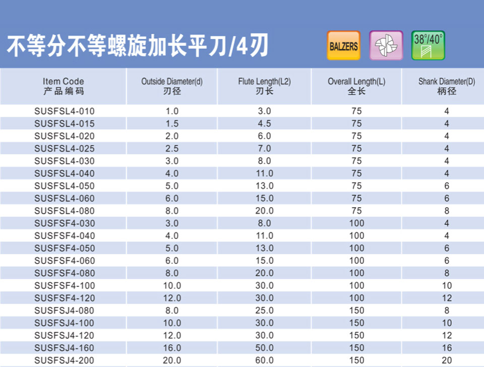 不等分不等螺旋加長平刀4刃