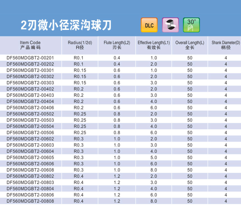 2刃微小徑深溝球刀