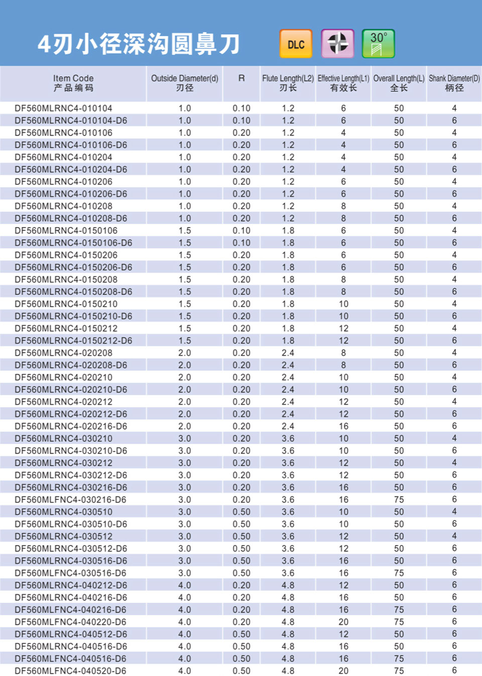 4刃小徑深溝圓鼻刀