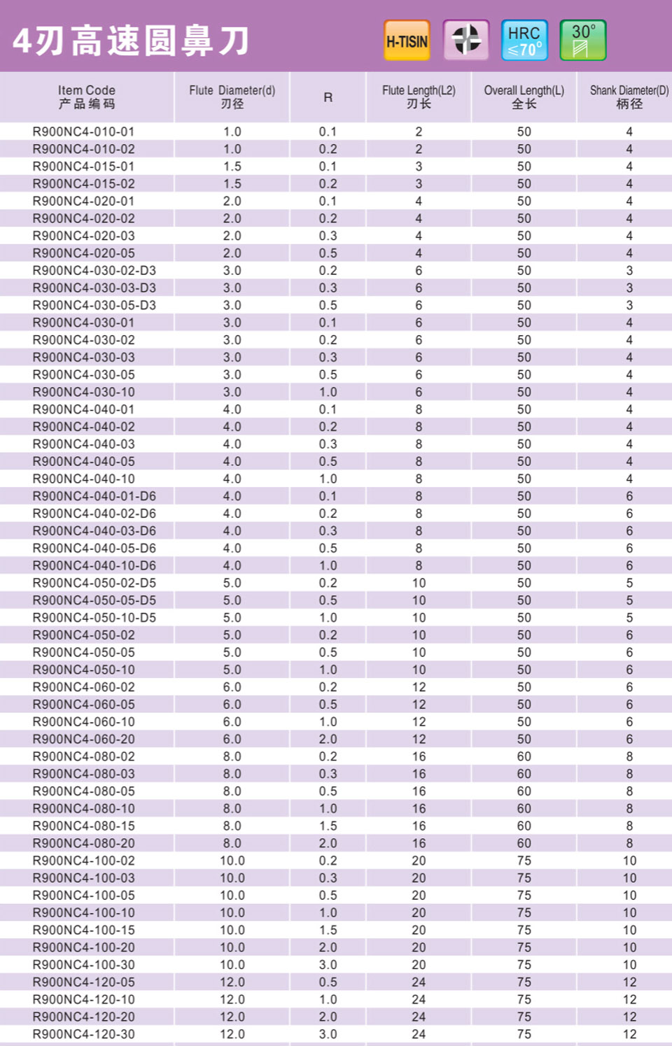 4刃小徑深溝圓鼻刀
