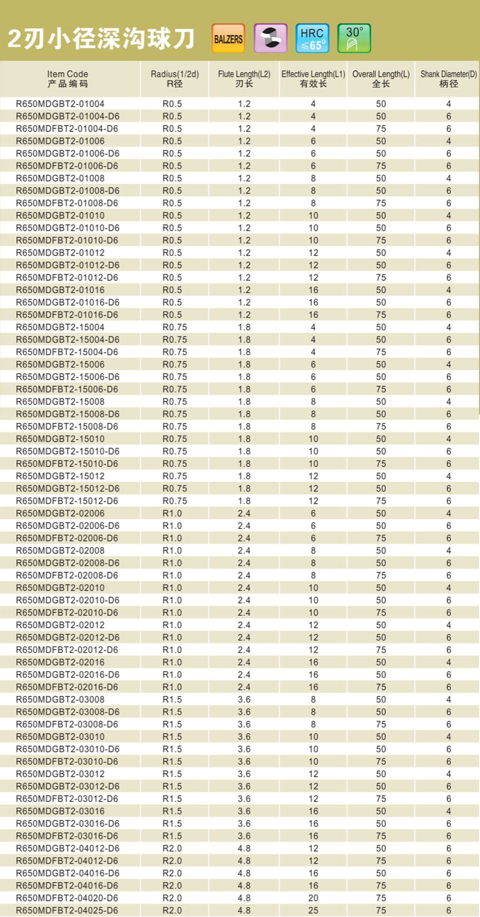 2刃微小徑深溝球刀