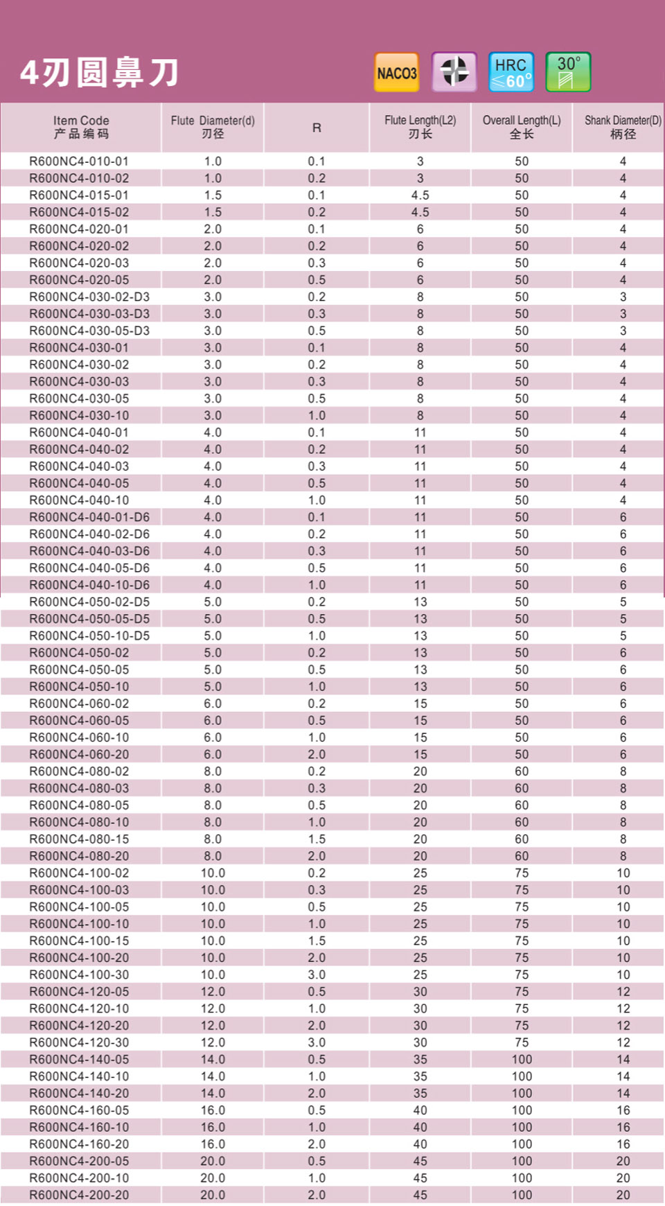 4刃小徑深溝圓鼻刀